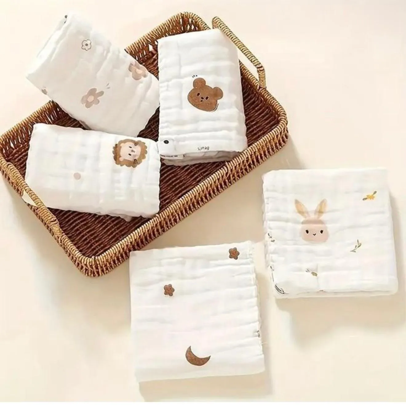 5-pieces of cute cartoon printed baby towel set, soft cloth, newborn bath towel